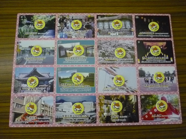 メキシコ発祥のゲーム”ロテリア”の栗東バージョン”栗東ロテリア”を、約10名のプロジェクトメンバーと共に一年間かけて作成してきました。栗東ロテリアとは、栗東の名所や特産物(全54項目)を集約したゲームで、老若男女、そして外国籍の方も栗東を楽しく学ぶことができます。B4サイズの手元カード(16枚の絵柄があります)と読み札を一致させる、ビンゴゲームのような遊びです。